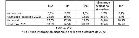 Cuadro 1. CBA, IPC y línea de la pobreza (LP) entre noviembre 2020 y noviembre 2022