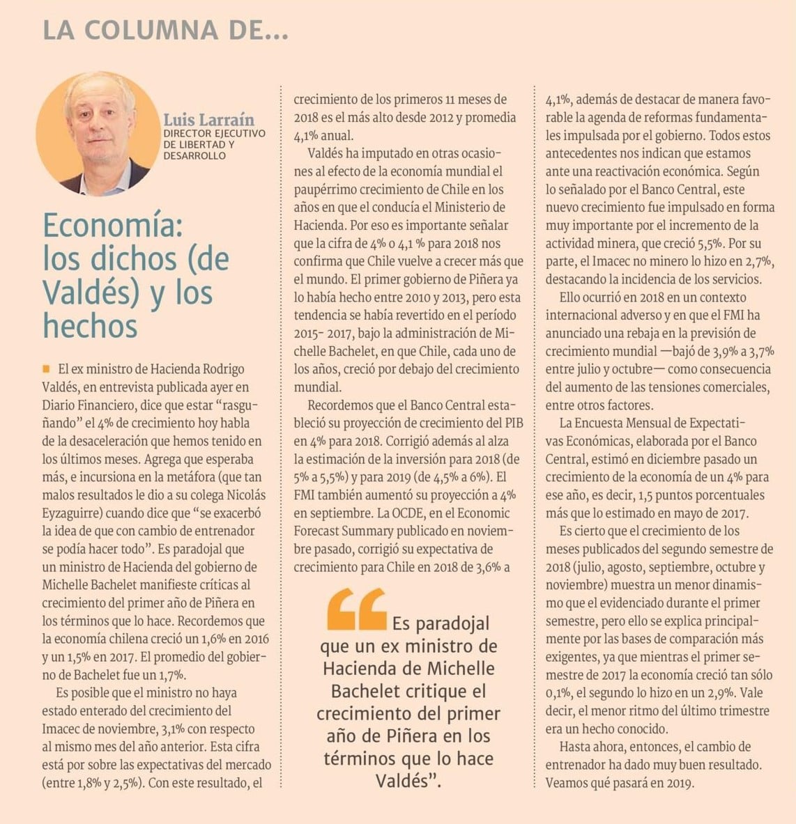 Columna de Luis Larraín, Director Ejecutivo de Libertad y Desarrollo, publicada en Diario Financiero.-