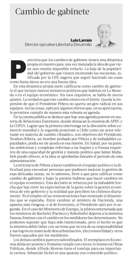 Columna de Luis Larraín, Director Ejecutivo de LyD, publicada en La Tercera.-