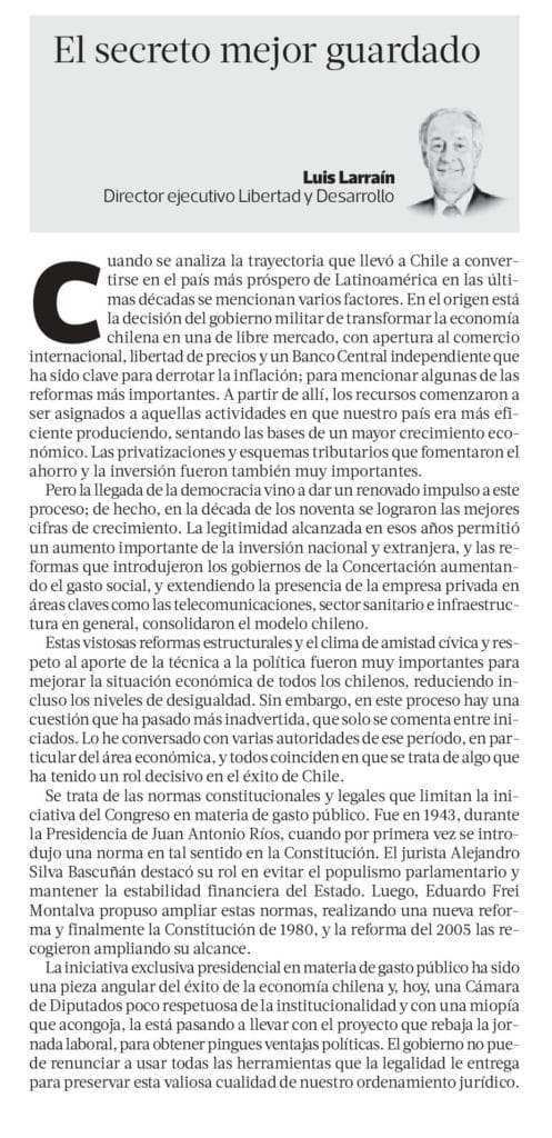 Columna de Luis Larraín, Director Ejecutivo de Libertad y Desarrollo, publicada en La Tercera.-