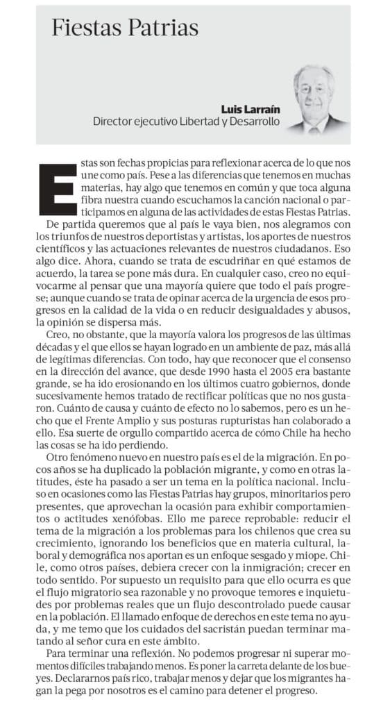 Columna de Luis Larraín, Director Ejecutivo de Libertad y Desarrollo, publicada en La Tercera.-