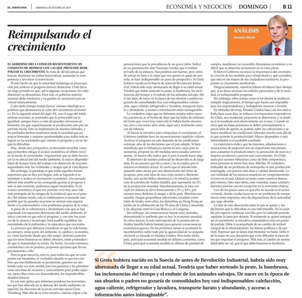 Columna de Hernán Büchi, Consejero de Libertad y Desarrollo, publicada en El Mercurio.-