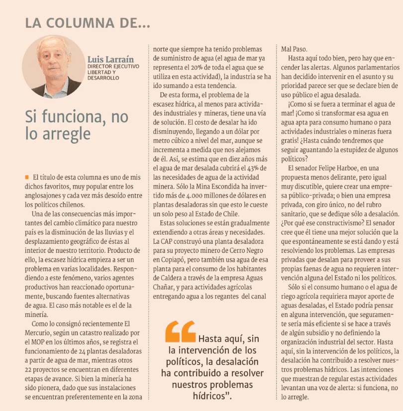Columna de Luis Larraín, Director Ejecutivo de Libertad y Desarrollo, publicada en Diario Financiero.-