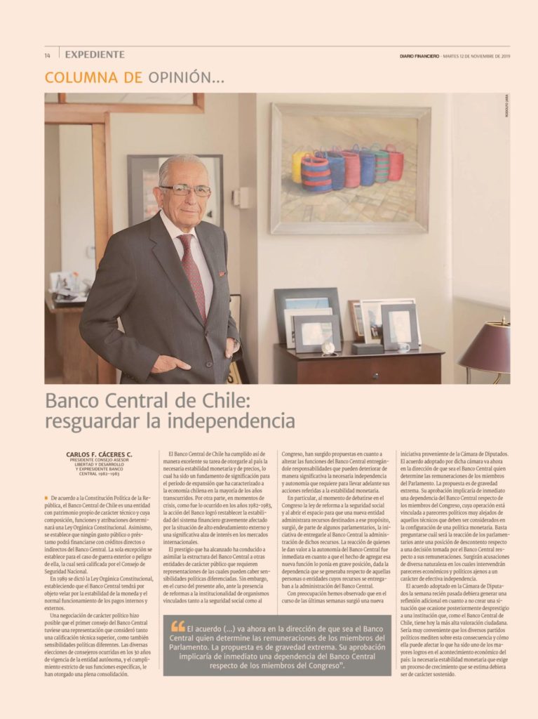 Columna de Carlos F. Cáceres, Presidente del Consejo Asesor de Libertad y Desarrollo, publicada en El Diario Financiero.
