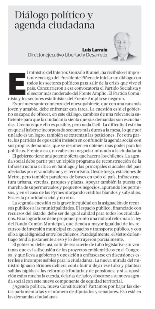 Columna de Luis Larraín, Director Ejecutivo de Libertad y Desarrollo, publicada en La Tercera.-