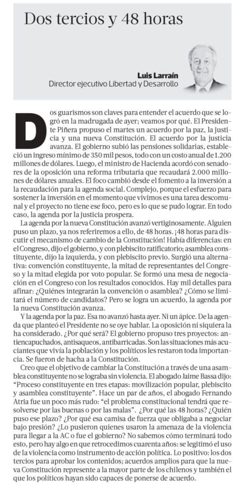 Columna de Luis Larraín, Director Ejecutivo de Libertad y Desarrollo, publicada en La Tercera.-