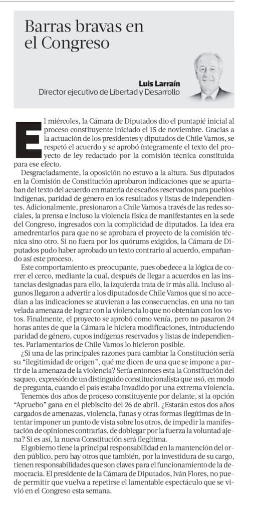 Columna de Luis Larraín, Director Ejecutivo de Libertad y Desarollo, publicada en La Tercera.-