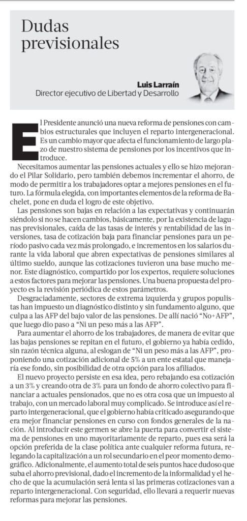 Columna de Luis Larraín, Director Ejecutivo de Libertad y Desarrollo, publicada en La Tercera.-