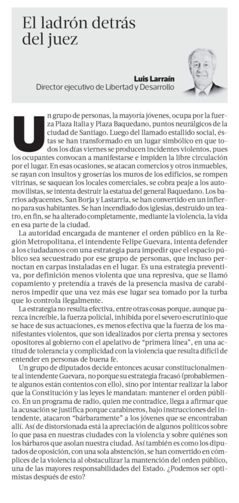 Columna de Luis Larraín, Director Ejecutivo de Libertad y Desarrollo, publicada en La Tercera.-