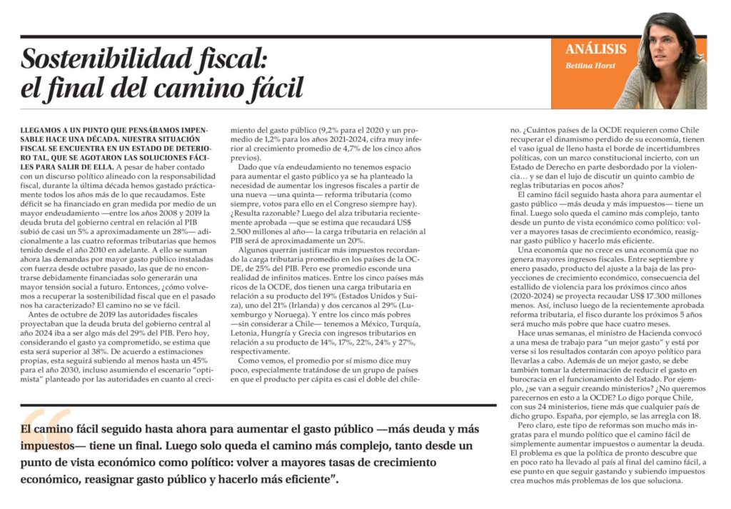 Columna de Bettina Horst, Subdirectora de Políticas Públicas de Libertad y Desarrollo, publicada en El Mercurio.-