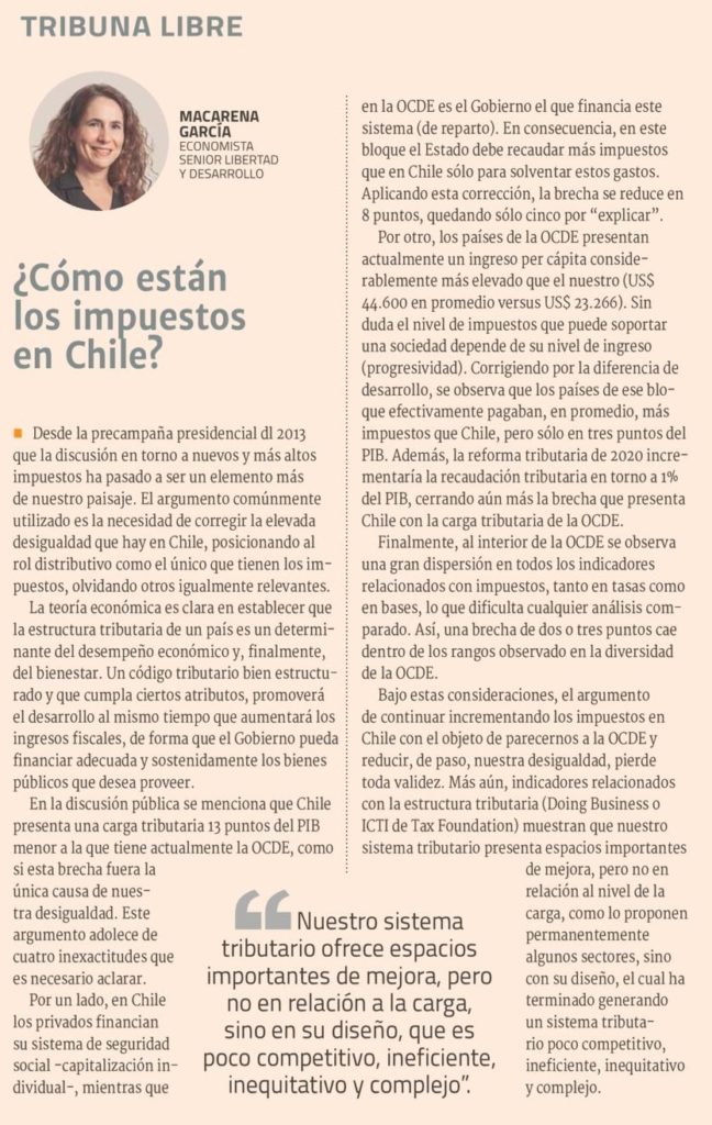 Macarena García, Economista Senior de Libertad y Desarrollo, publicada en Diario Financiero.-