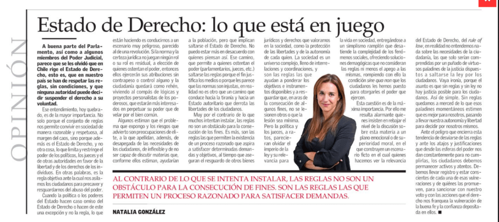 Columna de Natalia González, Directora de Asuntos Jurídicos y Legislativos de Libertad y Desarrollo, en El Mercurio.-