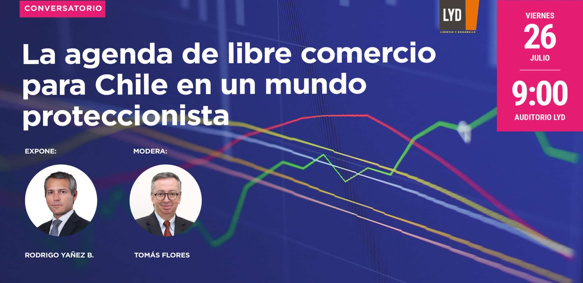 Para ello, te invitamos el viernes 26 de julio, a las 9:00 horas, al conversatorio "La agenda de libre comercio para Chile en un mundo proteccionista" donde junto a Rodrigo Yáñez debatiremos sobre los desafíos y oportunidades que se presentan en el escenario internacional actual.
