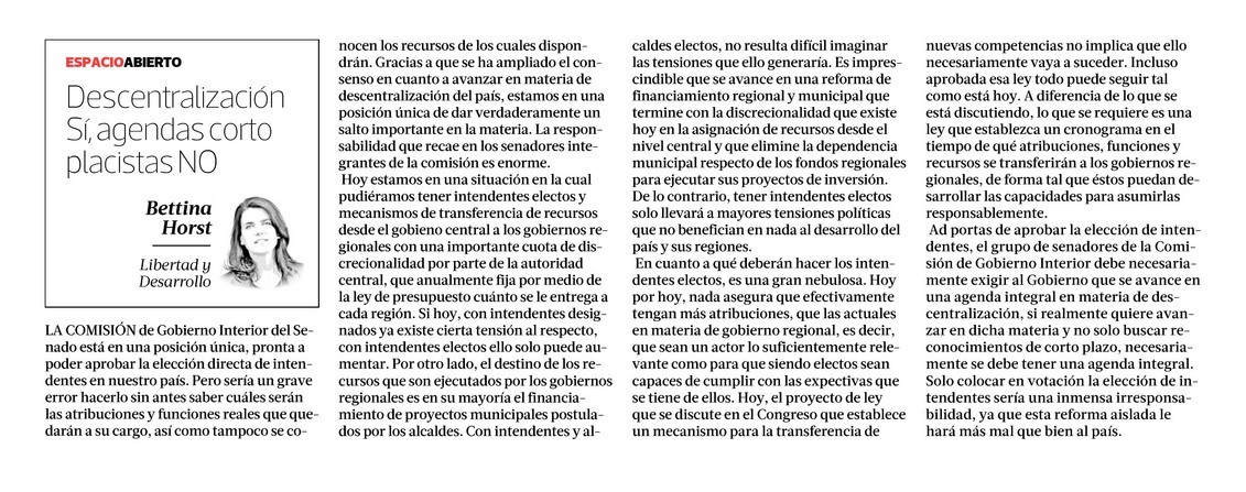 Descentralización SÍ, agendas corto placistas NO