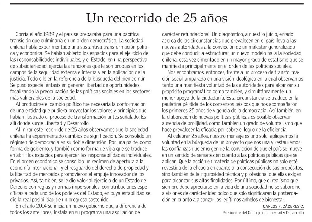 Entrevista a Carlos F. Cáceres en La Segunda a 27 años de la creación de LyD