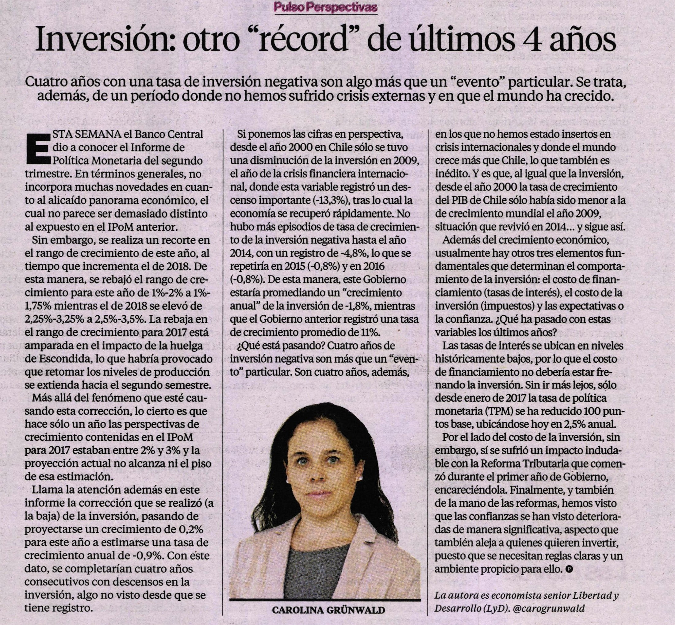 IPoM e inversión: Otro “record” de los últimos cuatro años