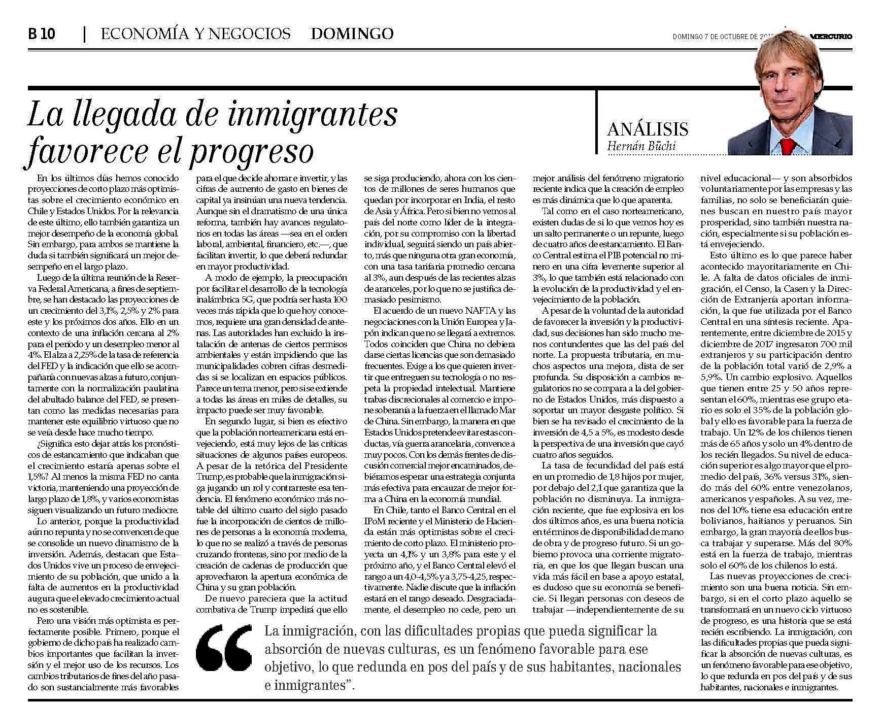 La llegada de inmigrantes favorece el progreso