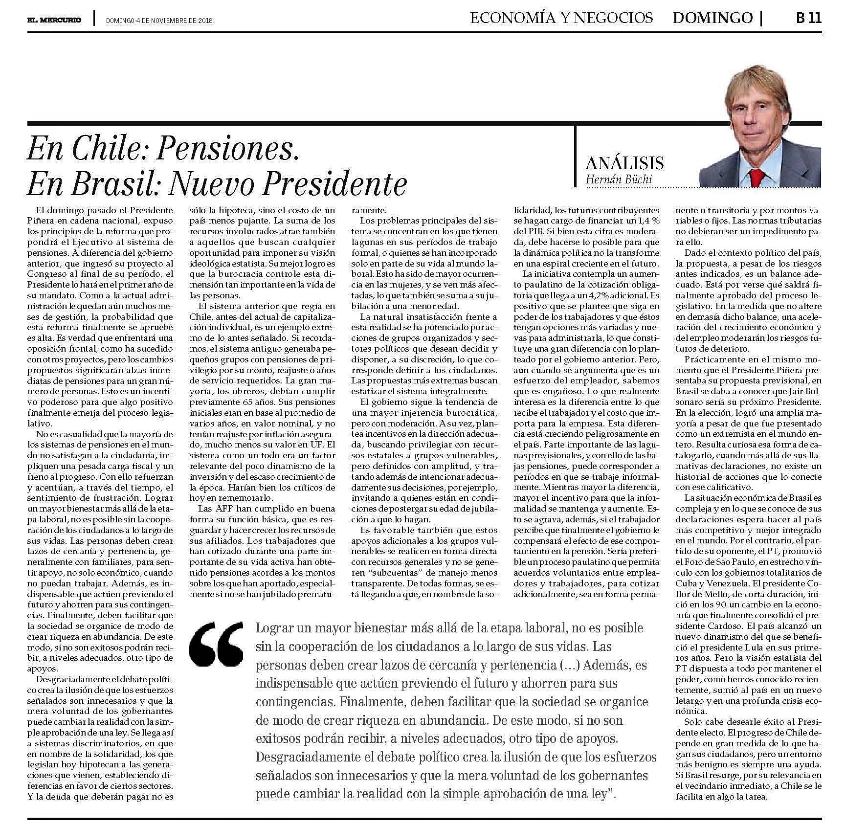 En Chile: Pensiones. En Brasil: Nuevo Presidente