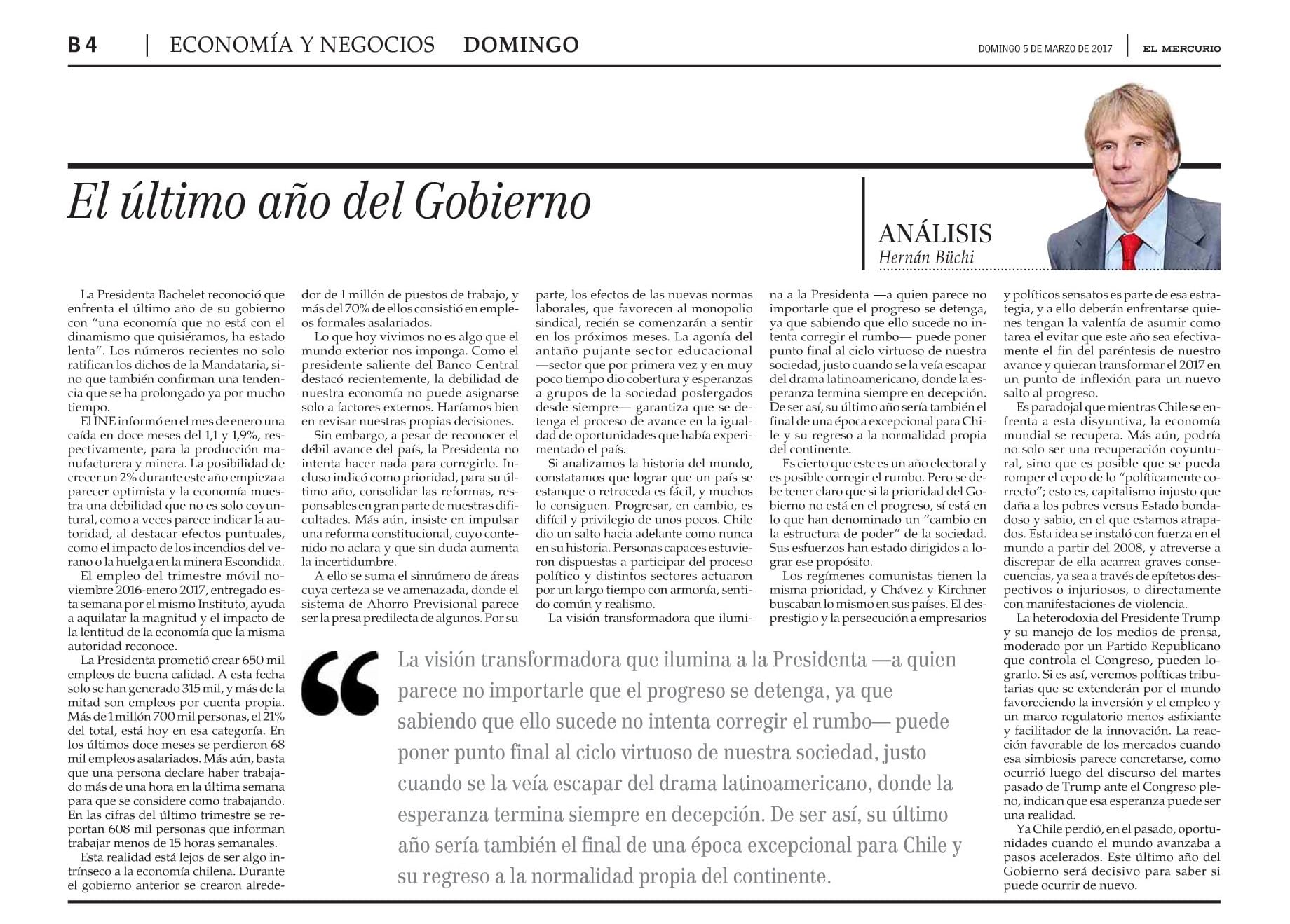 Segunda Presidencia de Bachelet: Un Balance Económico Preliminar