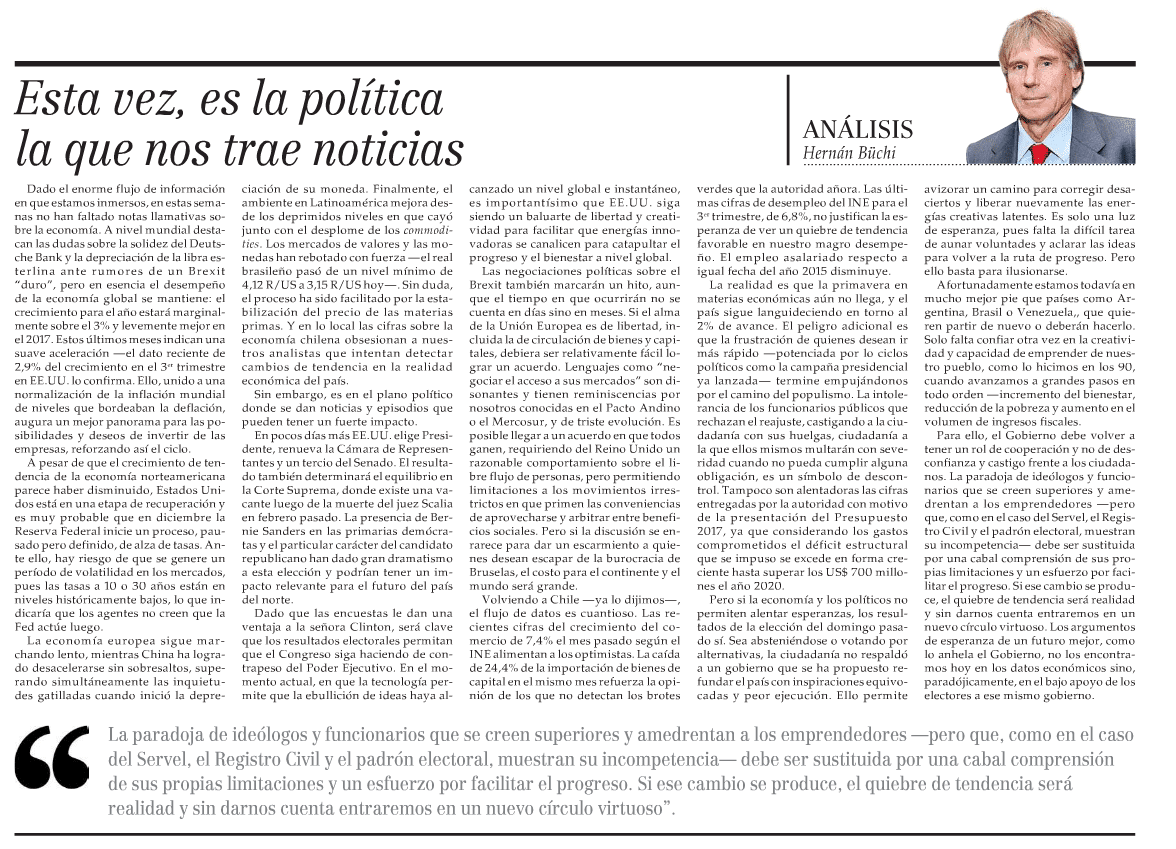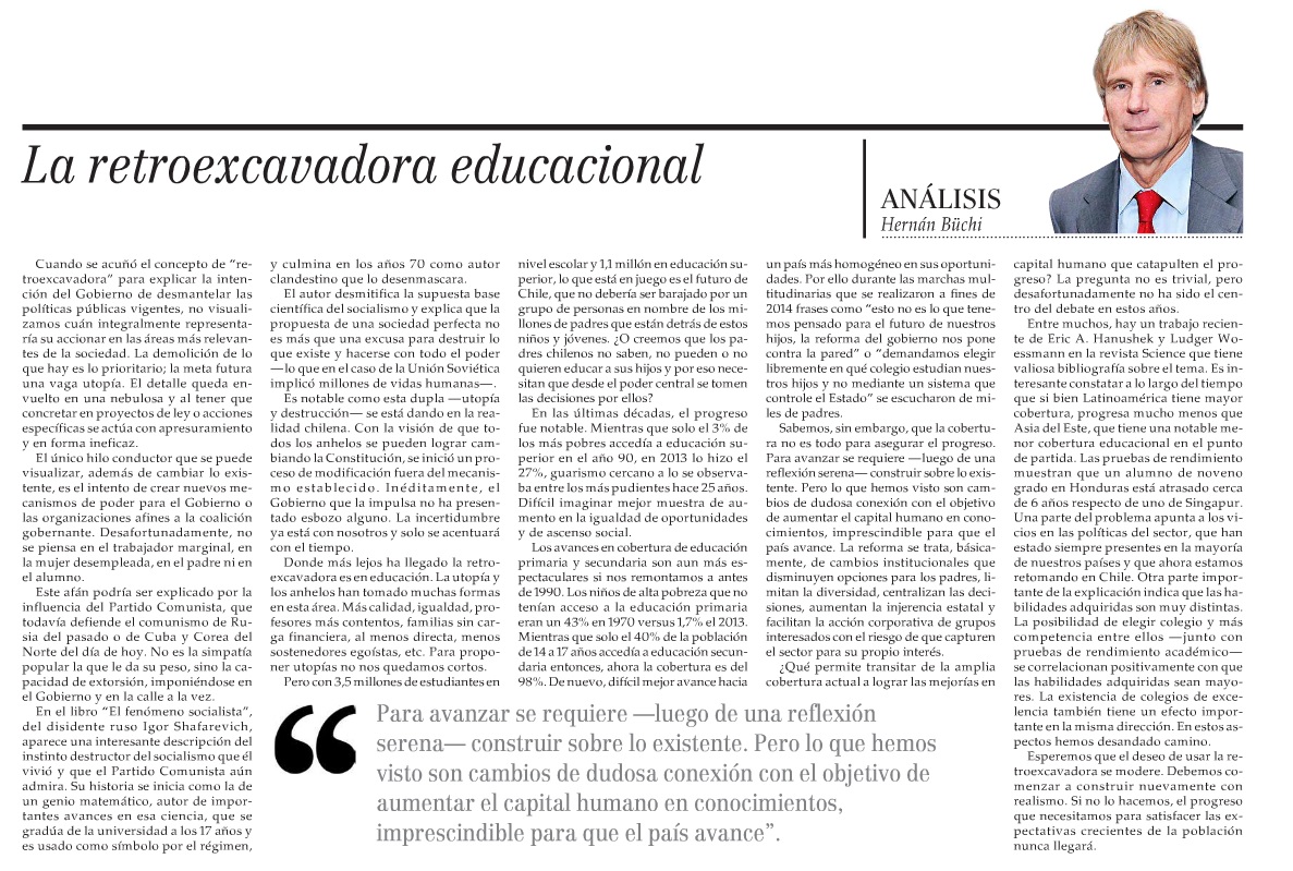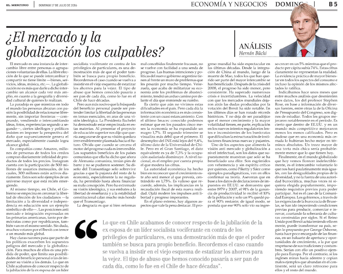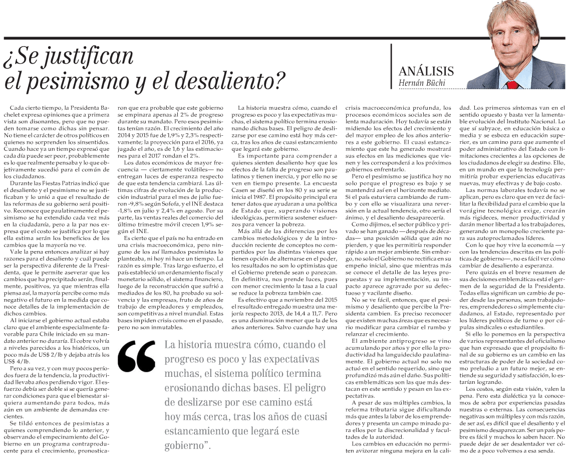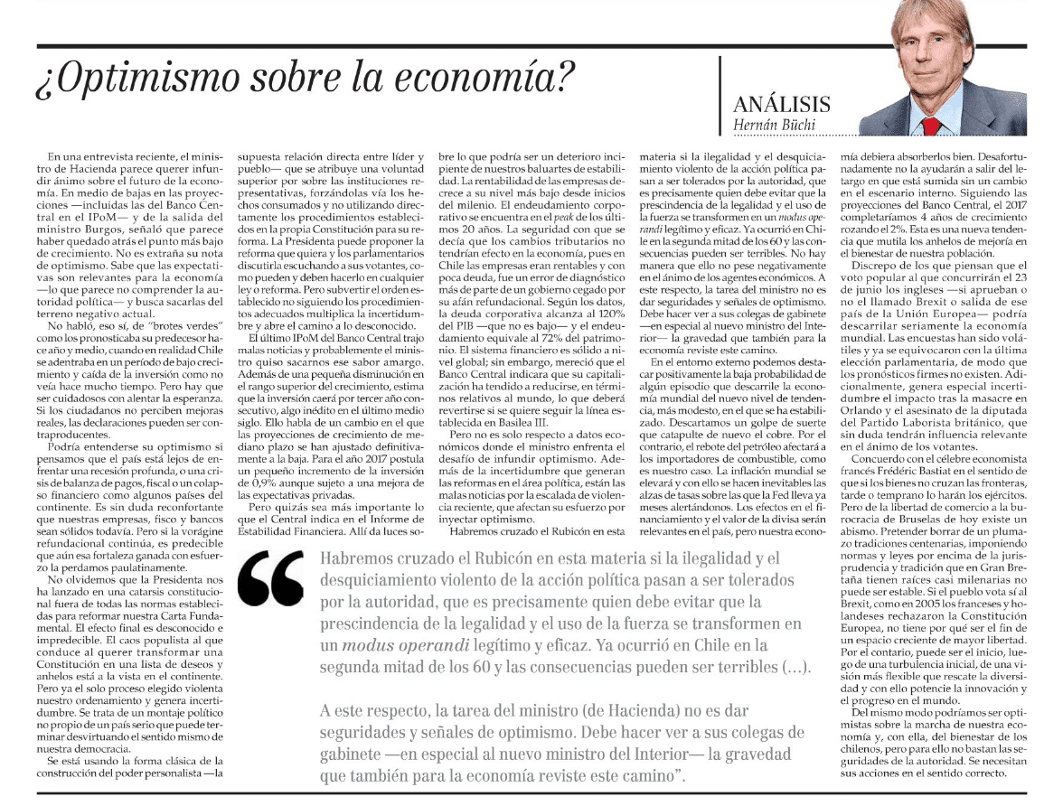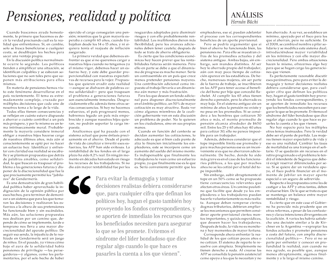 Columna de Hernán Büchi en El Mercurio: «Pensiones, realidad y política»