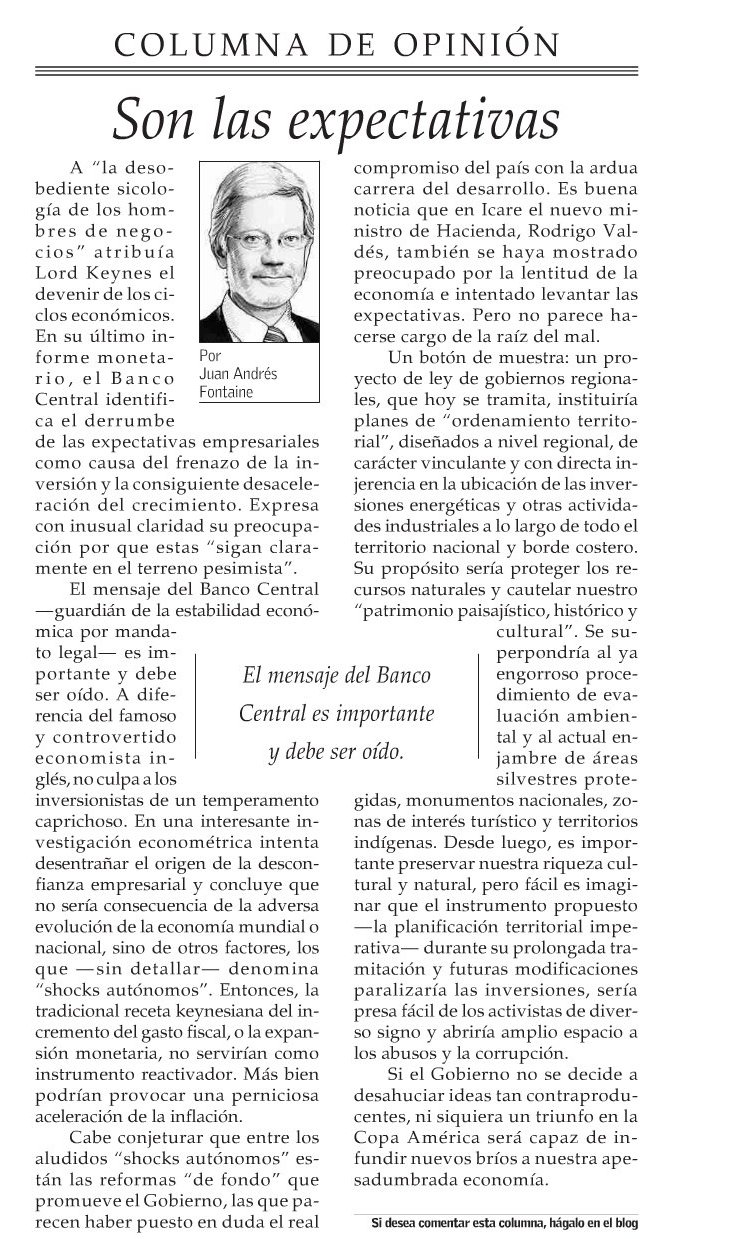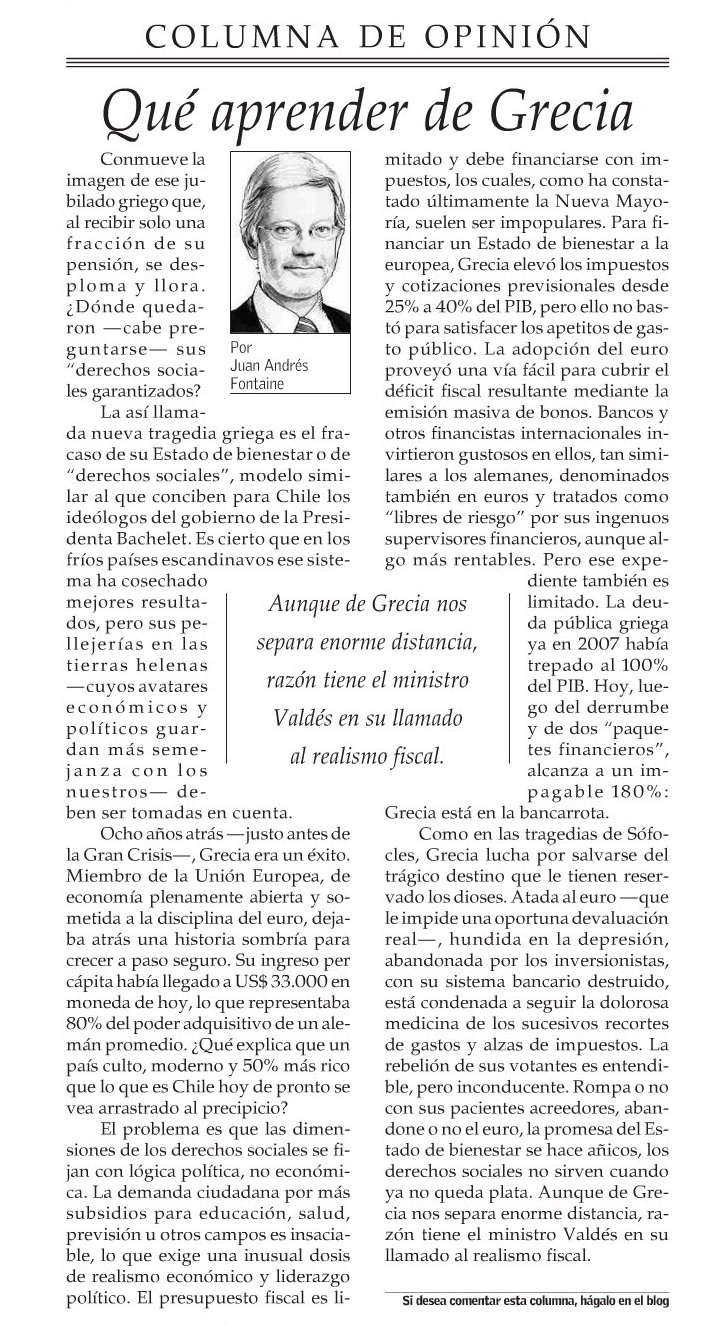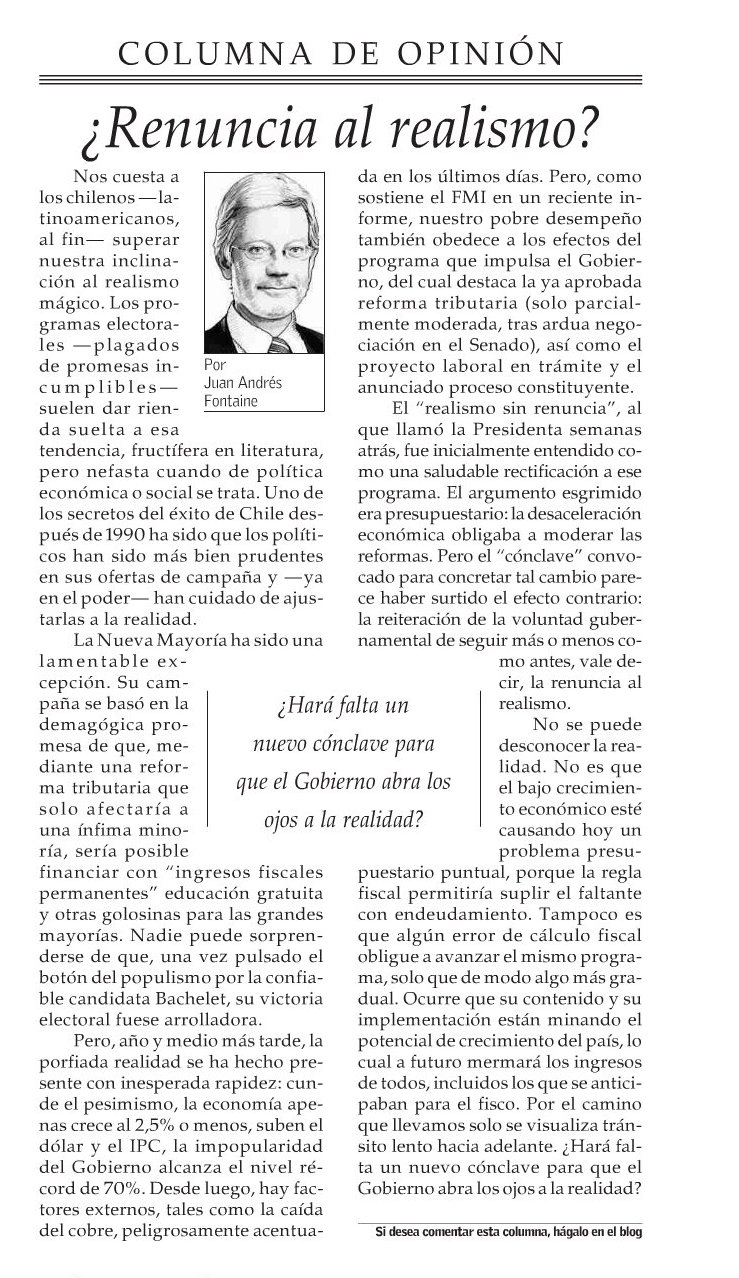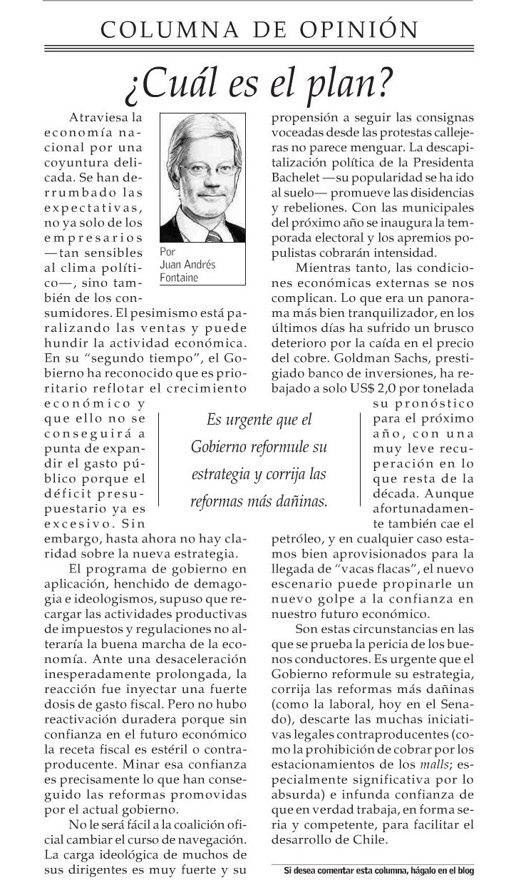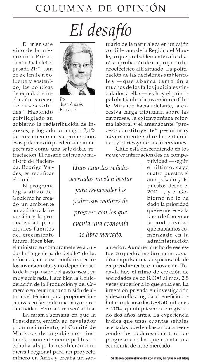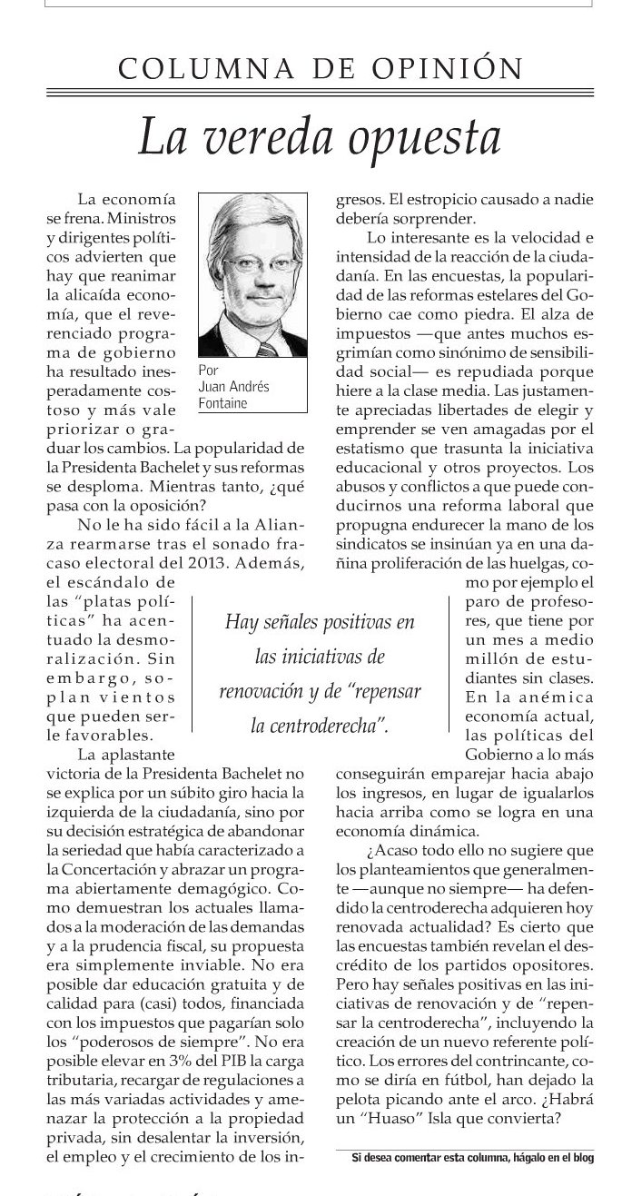 Juan Andrés Fontaine en El Mercurio: «La vereda opuesta»