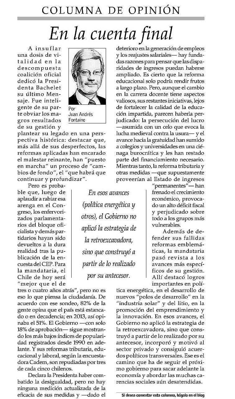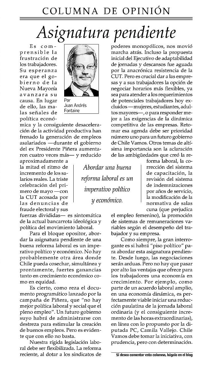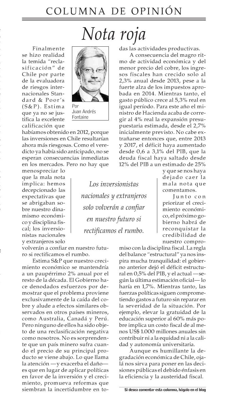 Juan Andrés Fontaine en La Tercera: “La decisión de S&P es un llamado de alerta para que rectifiquemos el rumbo”