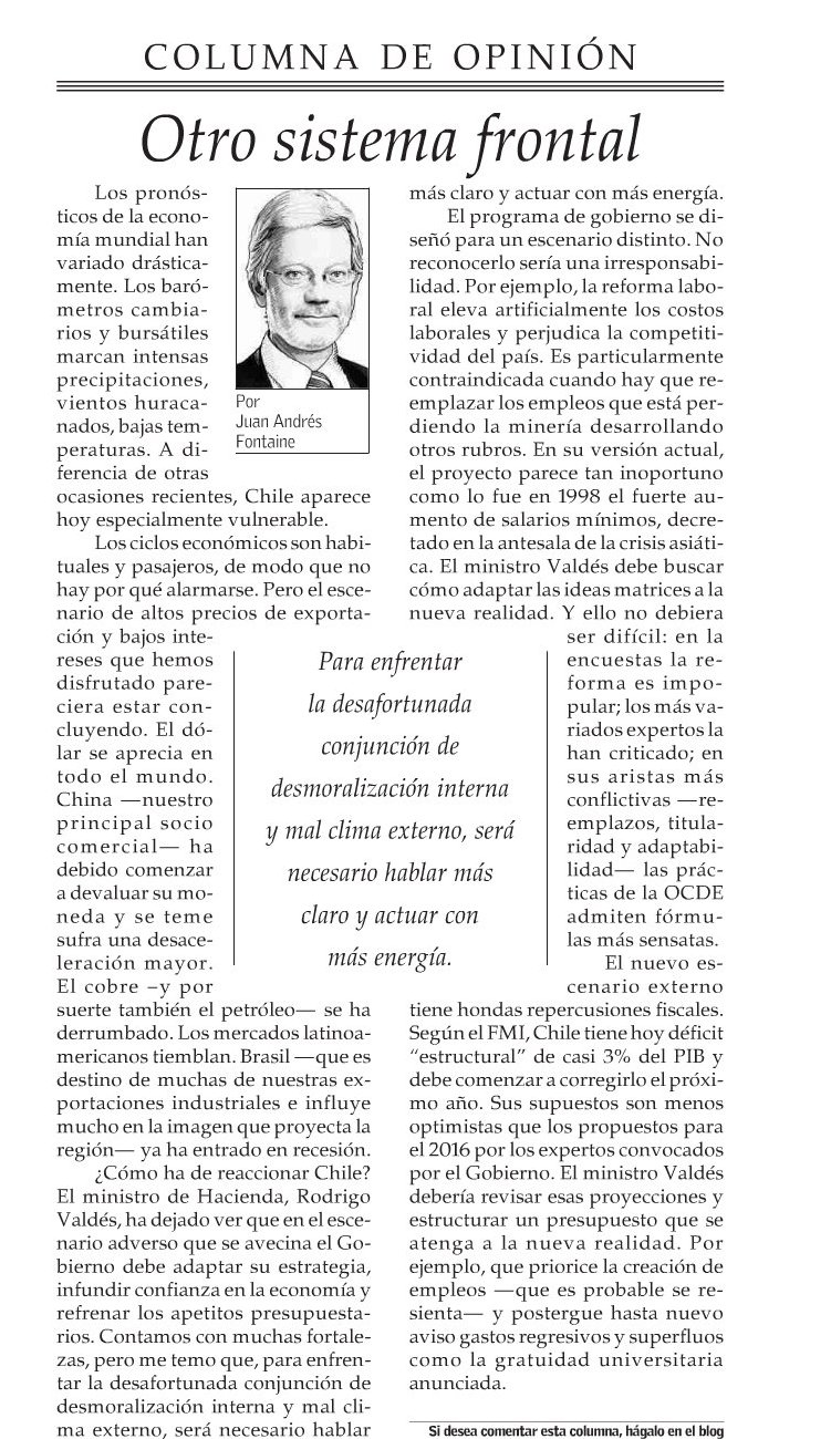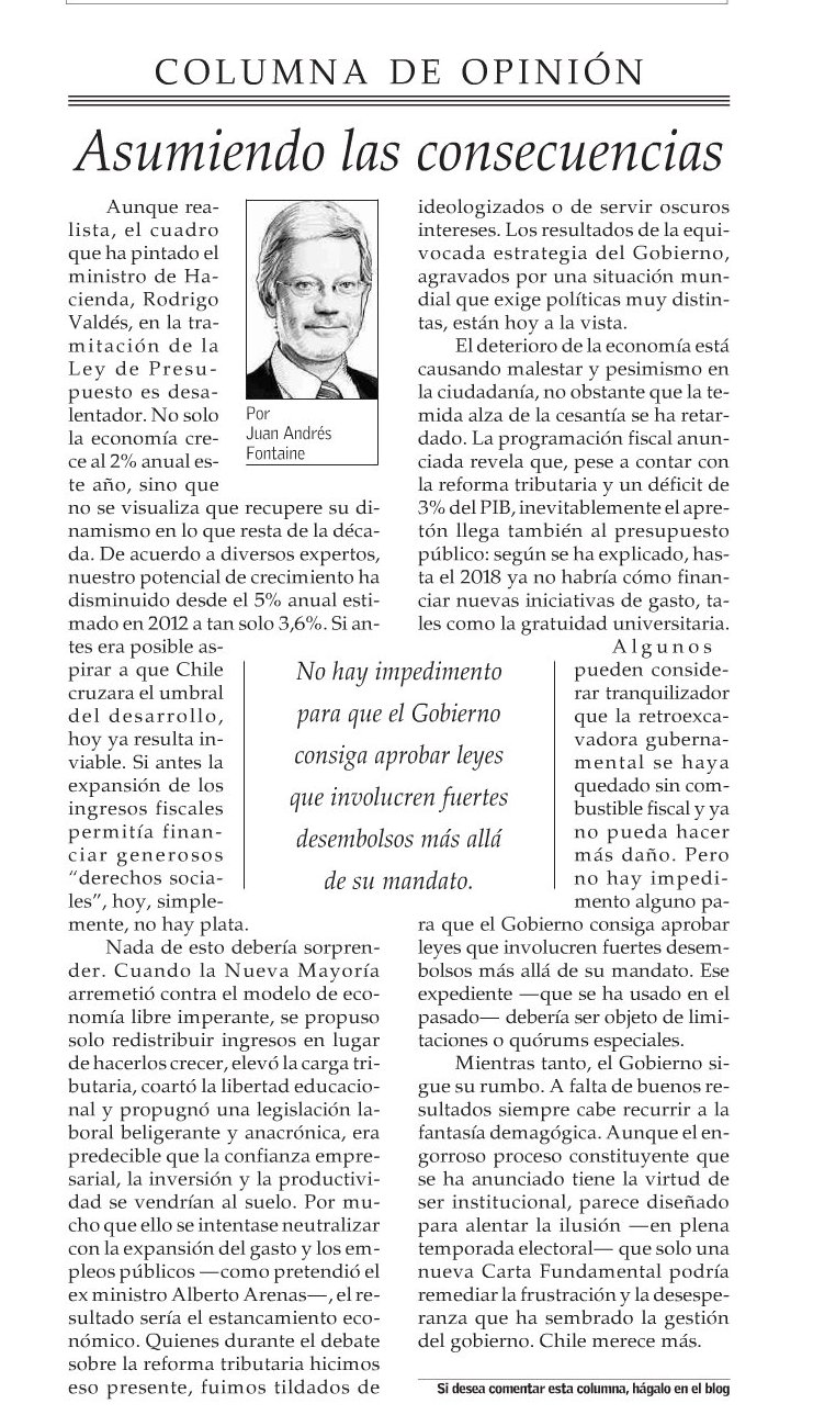 J.A. Fontaine en El Mercurio: «No me parece realista pedirle a un gobierno que enfrenta una situación fiscal estrecha, que rebaje impuestos»