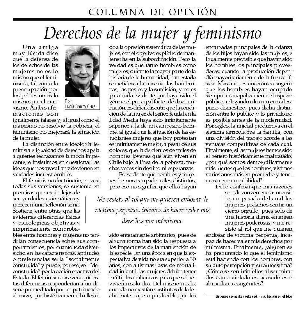 Extracto de «La Igualdad Liberal» de Lucía Santa Cruz publicado en La Segunda