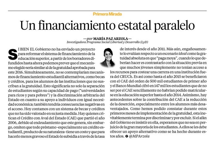 Financiamiento estudiantil paralelo a la gratuidad
