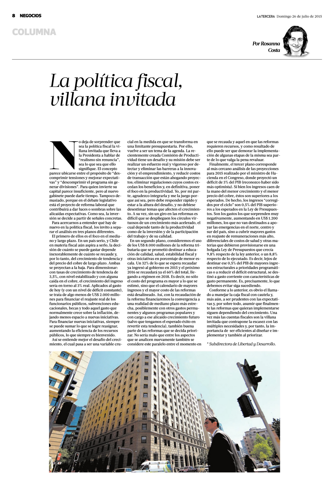 Rosanna Costa: «El ministro tiene que avanzar hacia el equilibrio fiscal. Si es el 2018, 2019 o 2020 y marca una trayectoria hacia allá, me parece razonable»